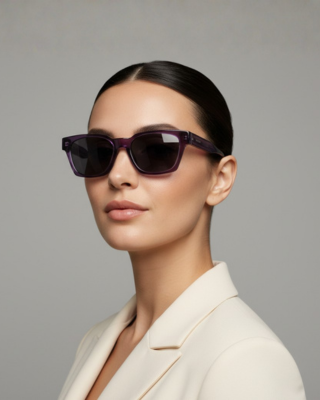 - Cristal Amatista: Su acabado traslúcido permite que la luz juegue con el armazón, cambiando sutilmente de intensidad según la iluminación del entorno.